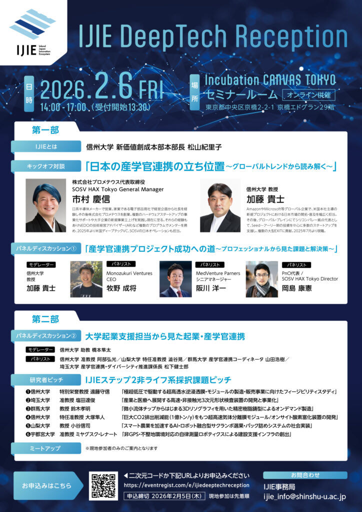 この度、2026年2月6日(金)にIncubation CANVAS TOKYO(東京都)にてIJIE主催イベント「IJIE DeepTech Reception」を開催いたします。