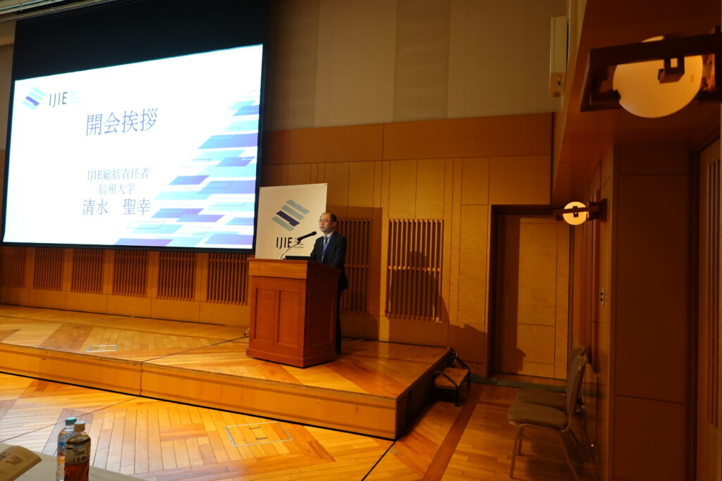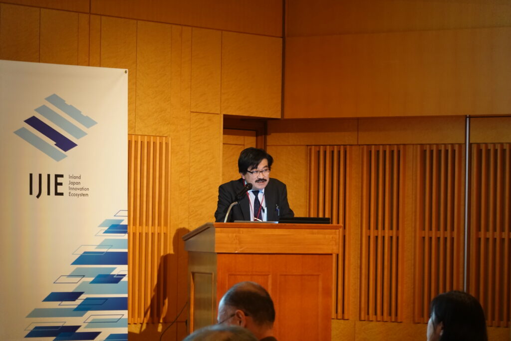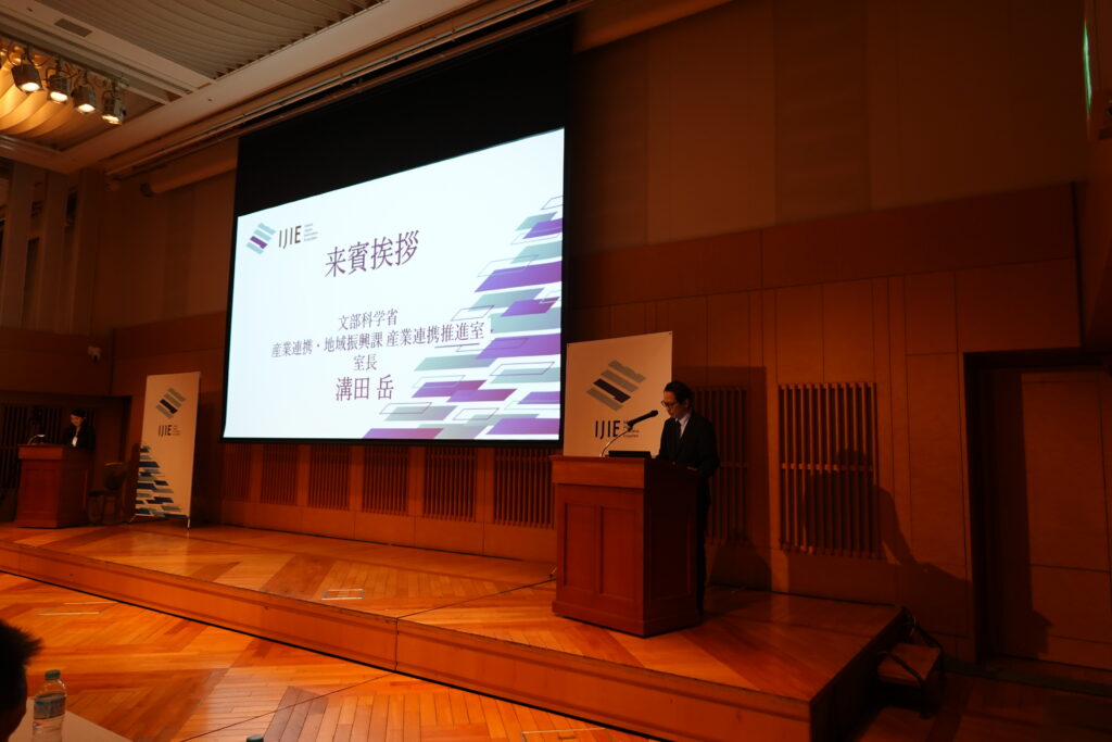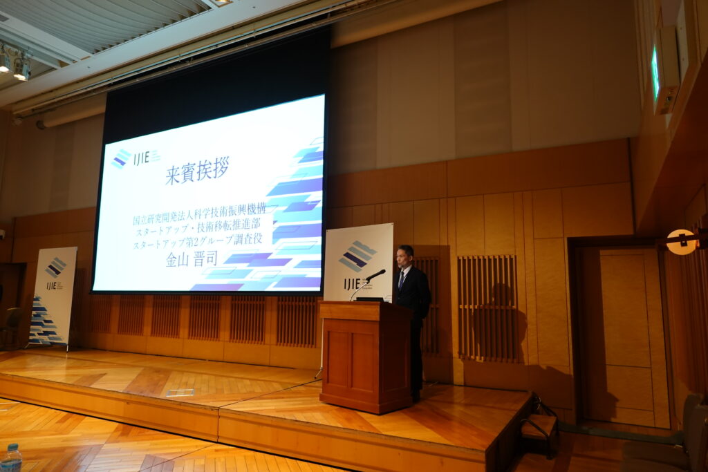 DemoDayは総括責任者の信州大学理事(研究、産学官・社会連携担当) 清水聖幸による開会挨拶から始まり、来賓の文部科学省 科学技術・学術政策局 産業連携・地域振興課 産業連携推進室長の溝田岳様と経済産業省 関東経済局 地域経済部次長の室住敬寛様、国立研究開発法人科学技術振興機構(JST) スタートアップ・技術移転推進部 スタートアップ第2グループ調査役 金山晋司様より大学発スタートアップへの国主導の支援体制の説明およびIJIEへの期待についてお話しいただきました。その後、信州大学学術研究・産学官連携推進機構の松山紀里子本部長によるIJIEの取り組みについて説明がありました。