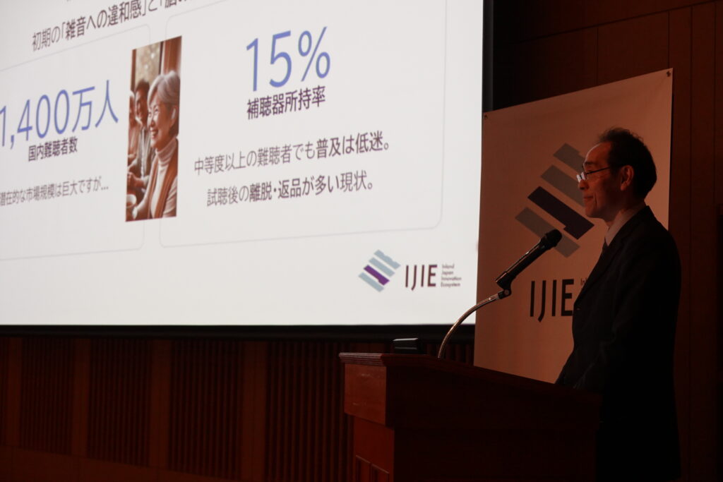 IJIE-GAPファンドプログラム2025に採択された30課題の研究代表者は、研究成果をピッチ形式で発表し、コメンテーターから各課題へのご意見や助言をいただきました。コメンテーターには、大学発スタートアップやディープテックでの起業に明るいティーエスアイ株式会社取締役会長 往西裕之様、CIC Institute Director 加々美綾乃様、ON&BOARD株式会社 代表取締役 GeneralPartner 下平将人様の3者を招聘。いずれの課題においてもシーズの技術的な点を評価しつつ、シーズをいかにビジネスにつなげていくか、次のステップをどう踏むかという実践的なコメントが登壇者に送られました。